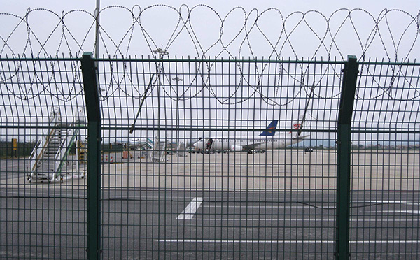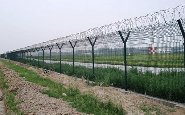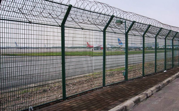 近年來,機(jī)場護(hù)欄網(wǎng)被廣泛應(yīng)用在機(jī)場,軍事基地等高安全場所。(如果在機(jī)場護(hù)欄網(wǎng)頂部加裝刀片刺絲、刀片刺繩后又很好的增強(qiáng)了安全防護(hù)性能。)