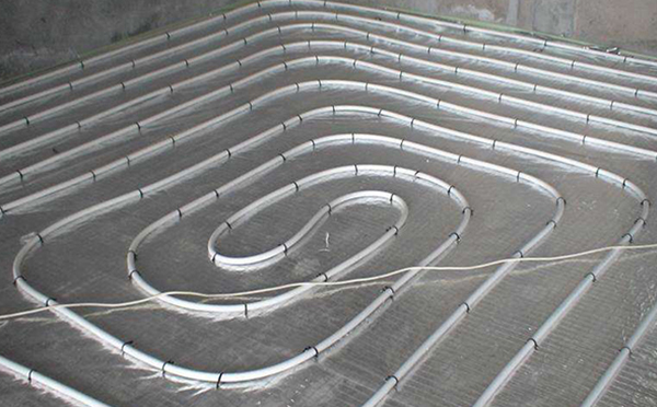 施工準備→材料準備→安裝分水器→連接主管→鋪設保溫層、邊界膨脹帶→鋪設反射鋁箔層→鋪設盤管→連接分水器→根據施工圖進行埋地管材鋪設→設置過門伸縮縫→中間驗收(一次水壓試驗)→細石混凝土填充層施工→完工驗收(二次水壓試驗)→運行調試